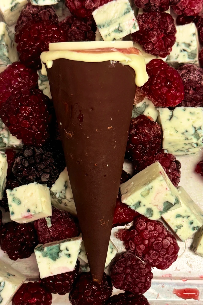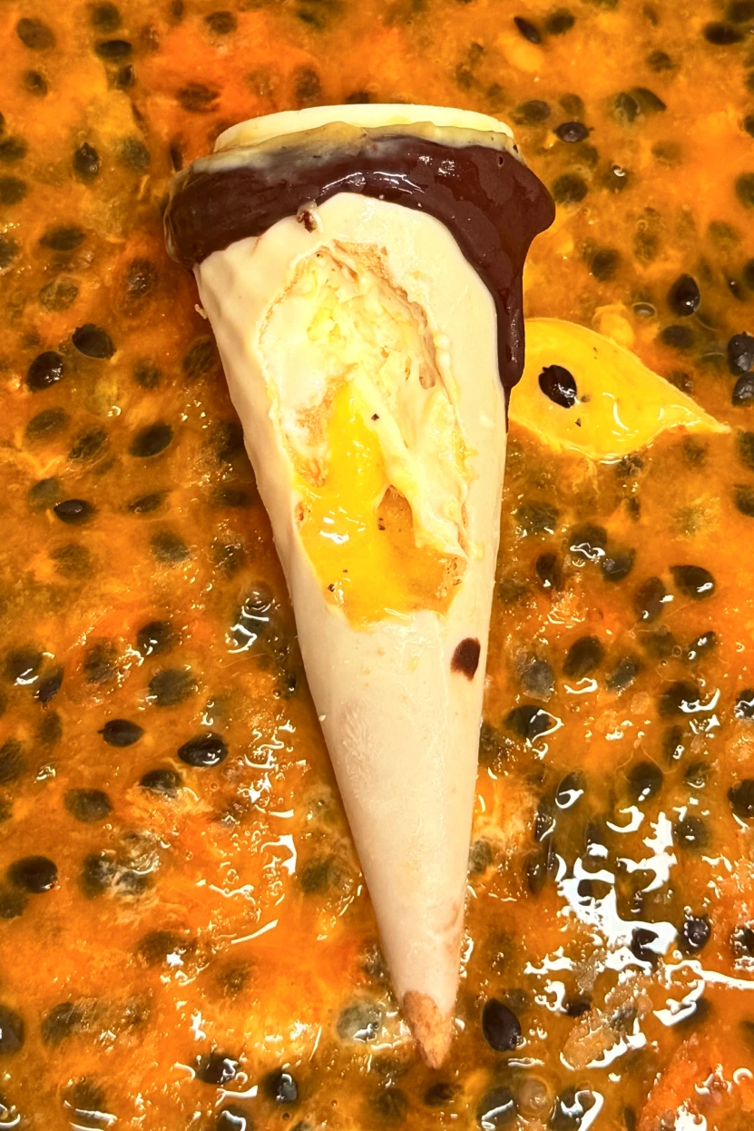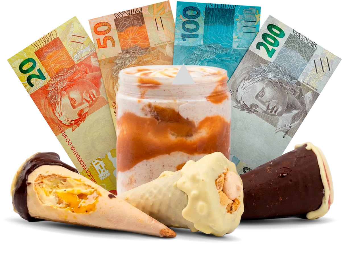 Baixo custo de produção + alto valor percebido (não é um sacolé, é um sorvete premium);